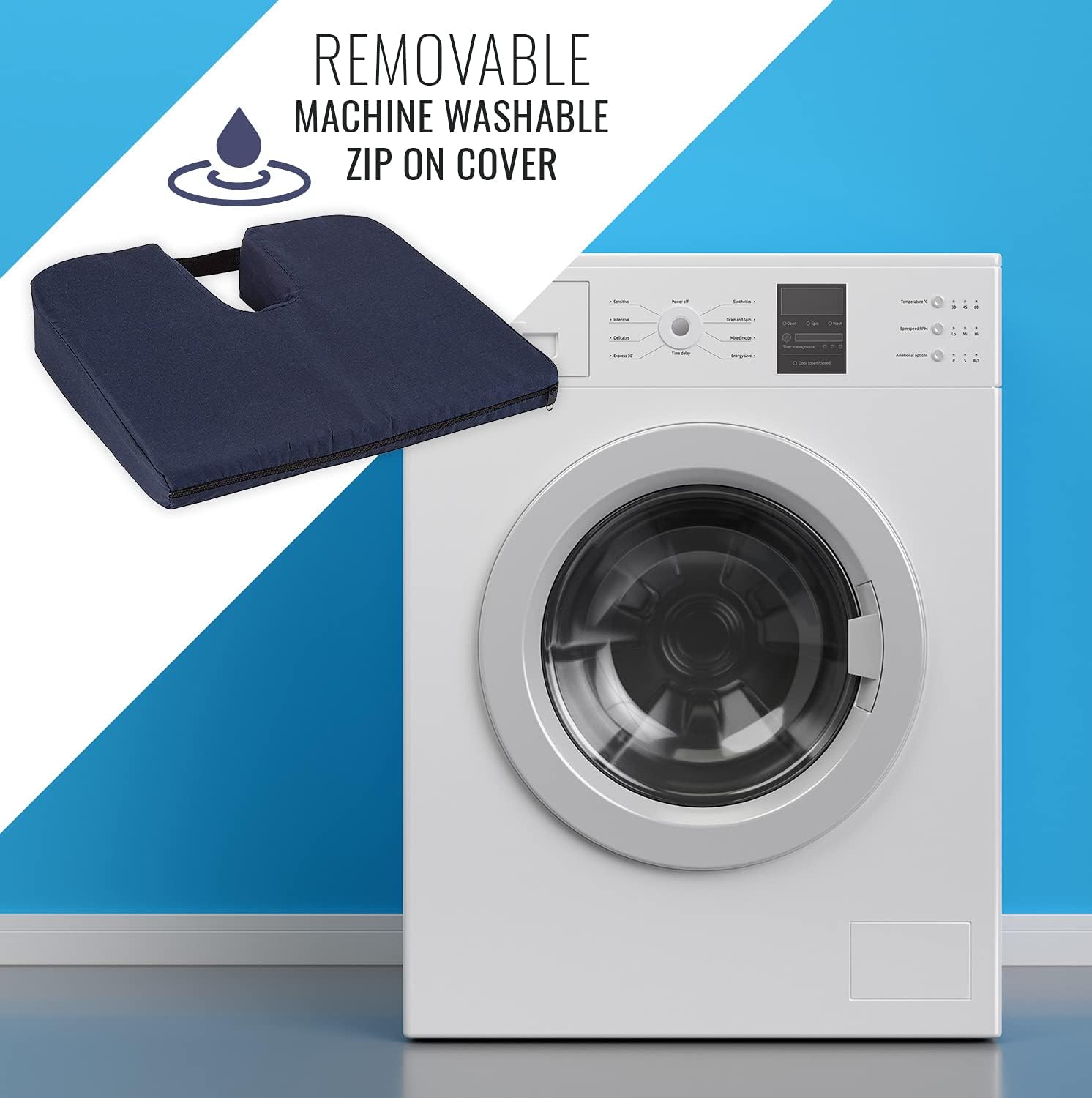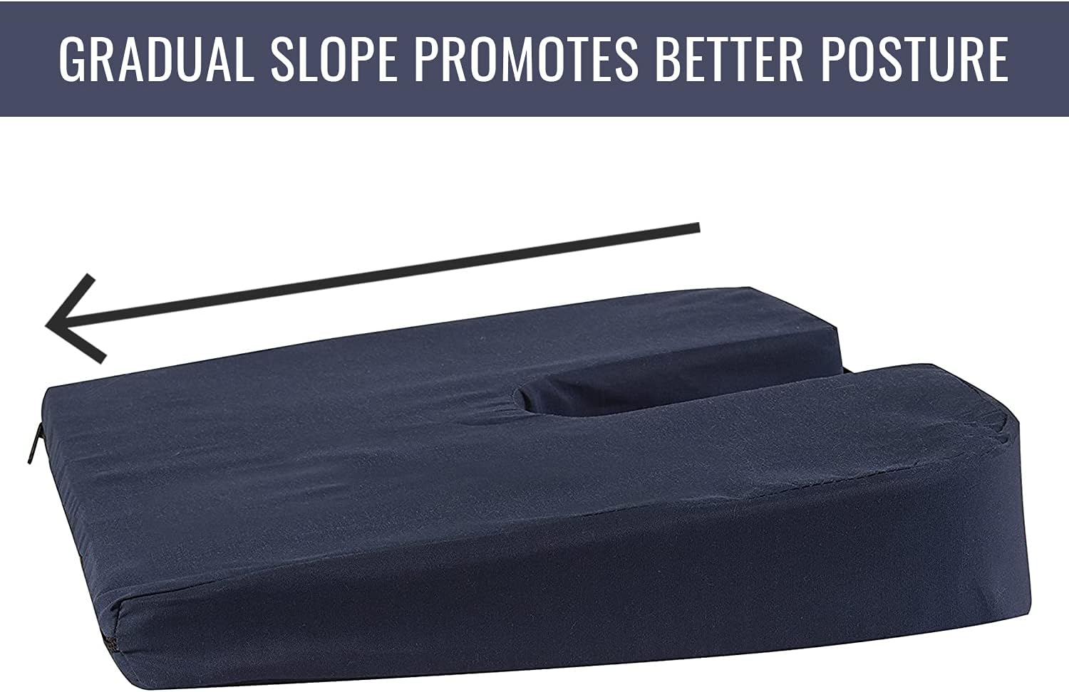 DMI Gradual Slope Seat Cushion for Coccyx, Sciatica and Tailbone Pain Used With Dining Room Chairs, Desk Chairs, Car Seats or Wheelchair Cushions, Machine Washable-Cover, 15 Inch, Navy