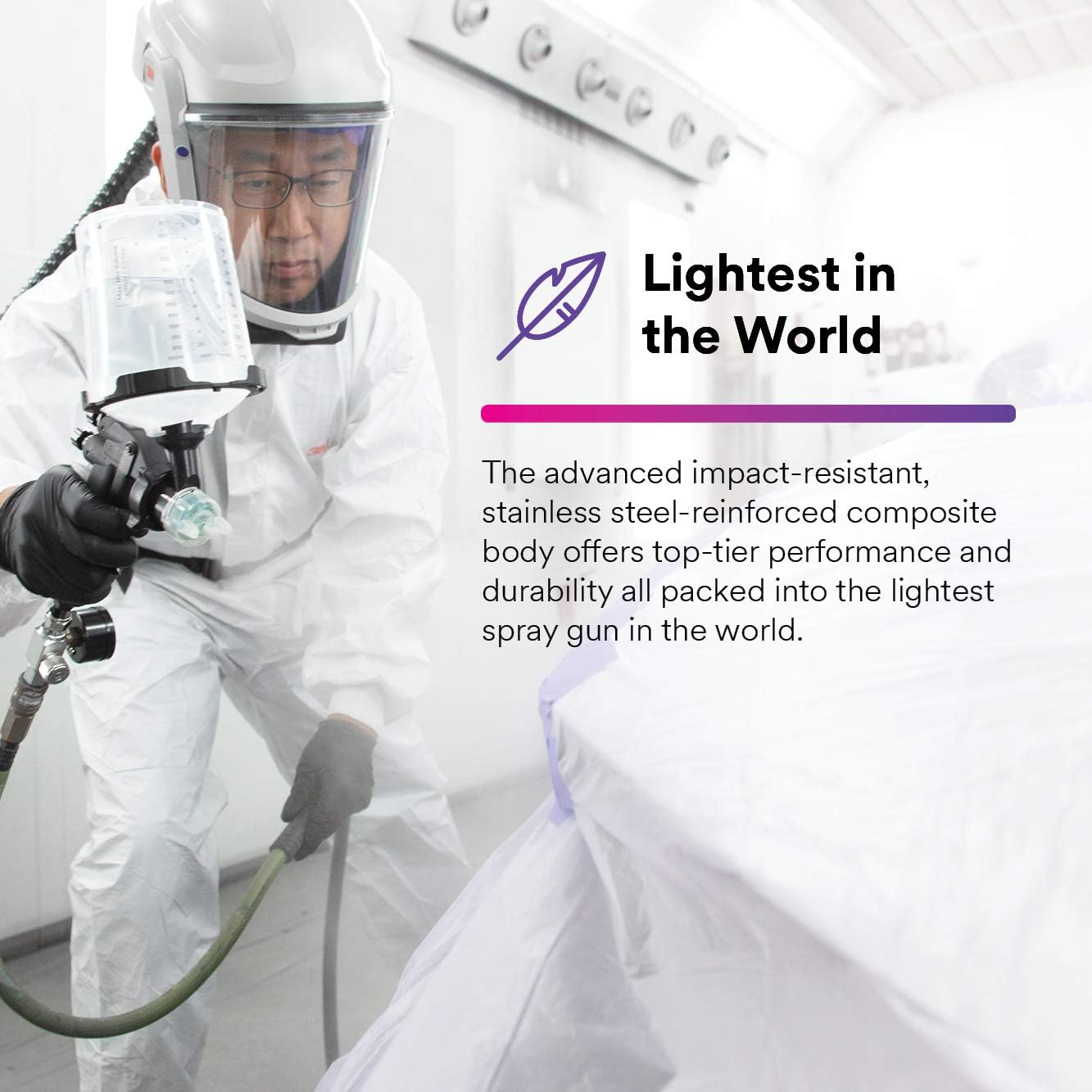 - LIGHTWEIGHT: Lightest in the industry; stainless-steel reinforced composite material is up to 50% lighter than conventional metal spray guns