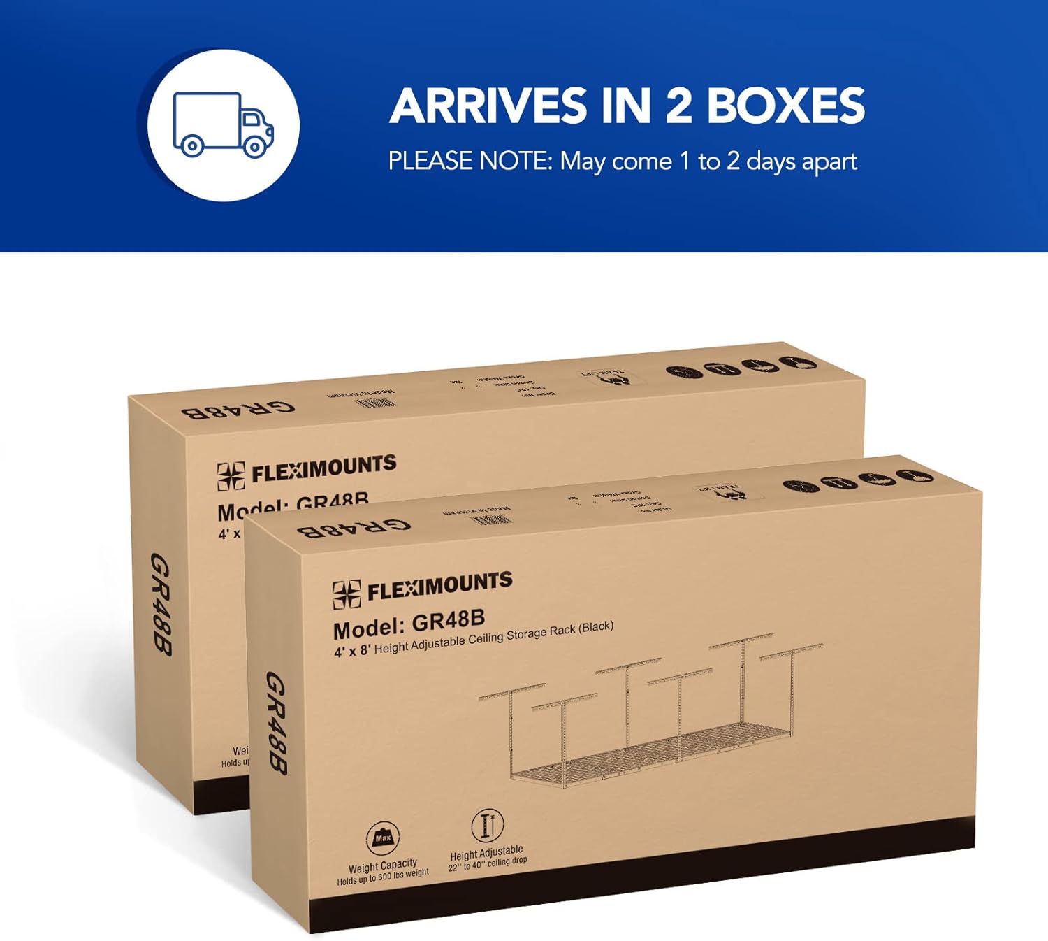 FLEXIMOUNTS 3x8 Overhead Garage Storage Rack,Adjustable Storage Organization System,Heavy Duty Metal Garage Ceiling Storage Racks,2 pack,Black
