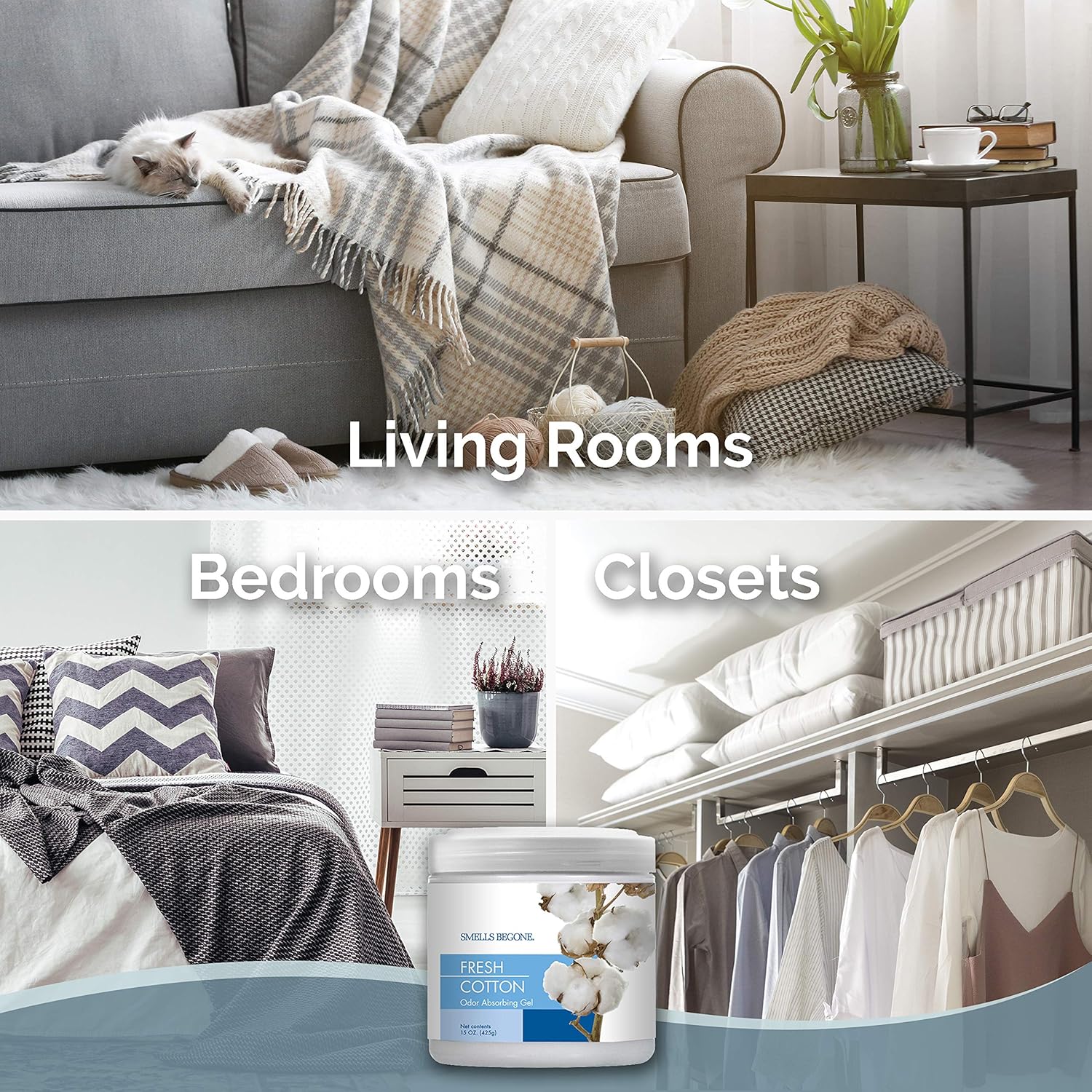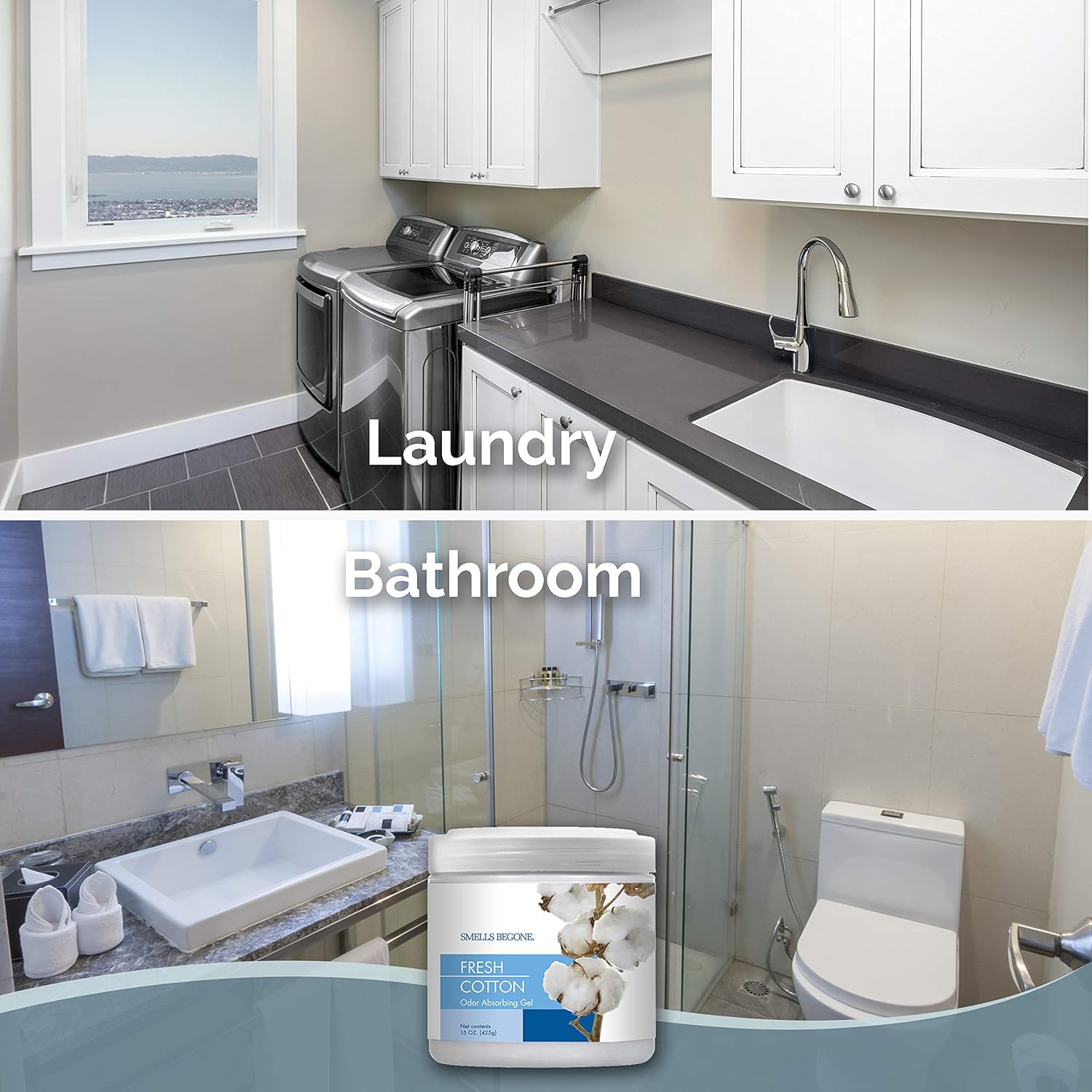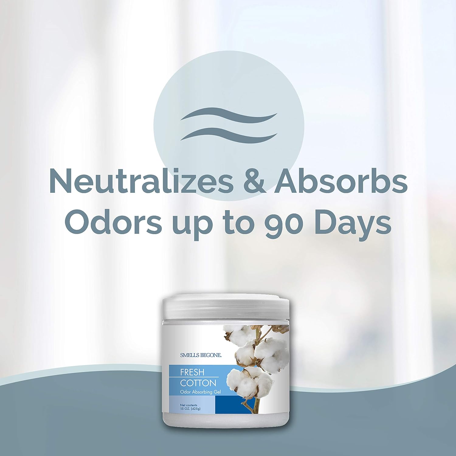 SMELLS BEGONE Air Freshener Odor Absorber Gel - 15 oz, Pack of 2 - Absorbs and Eliminates Odor in Pet Areas, Bathrooms, Cars, & Boats - Made with Essential Oils - Fresh Cotton Scent