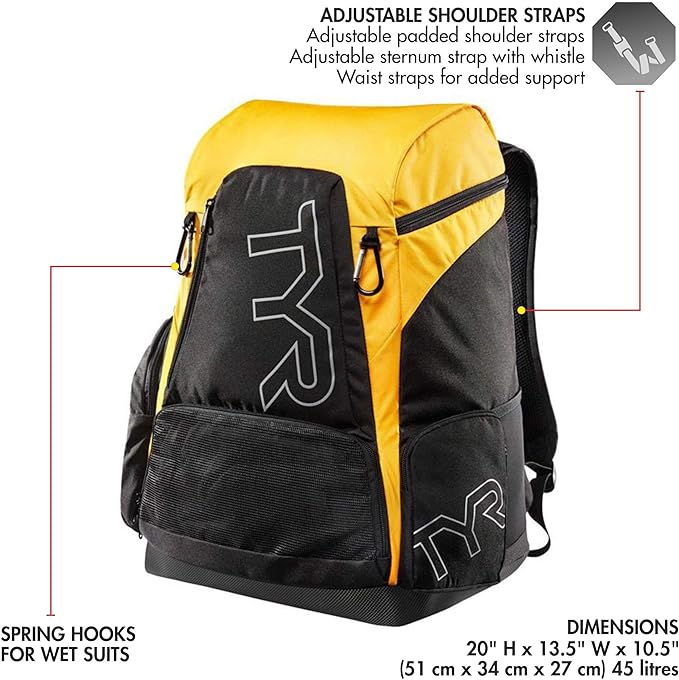TYR Alliance Backpack, Black/Gold, 45 Liter