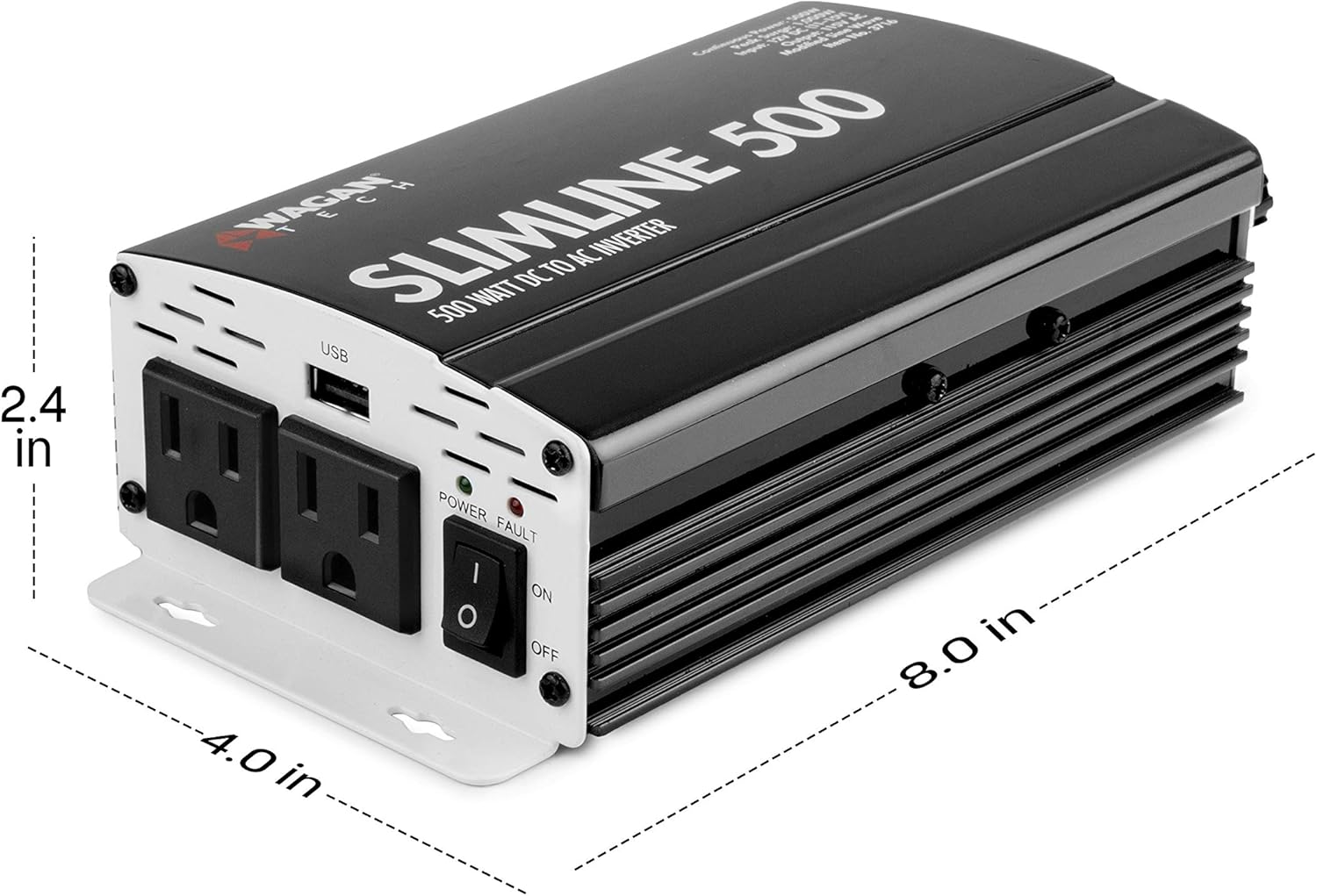 - 【ENGINEERED TO PERFORM】 - In your vehicle, boat, motorcycle, RV, truck, RV, motorhome, campground, kids soccer games or anywhere you need to convert DC (battery) power to AC (household) power is where the SlimLine inverter will shine!