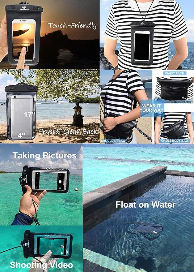 - PROTECT YOUR CELL PHONE AND MAKE THE MOST OF YOUR WATER SPORT ACTIVITIES: This set also includes a must have IPX8 Certified Waterproof Phone Case (3.9" x 6.7"). This amazing dry cell phone case features a very simple snap and lock access that has dual-sided clear windows that allow you to text, talk on the phone, take pictures and video while still inside the case. Suitable for phones up to 6.5 Inches of diagonal screen size.