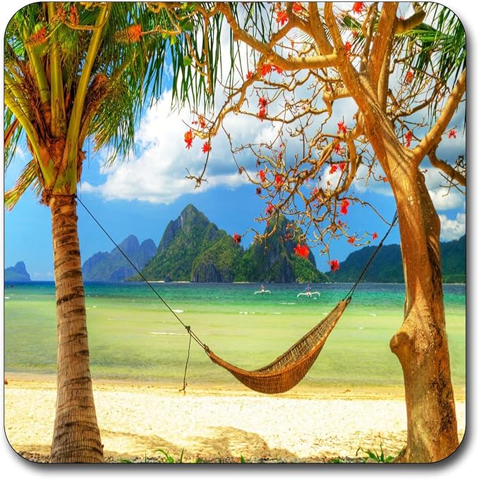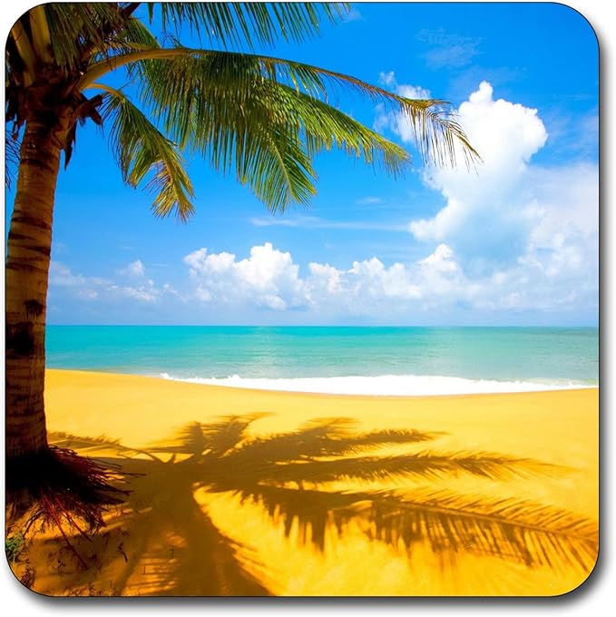 Summer Beach Pattern Square Coaster Set - Made of Recycled Rubber - Set of 4 …