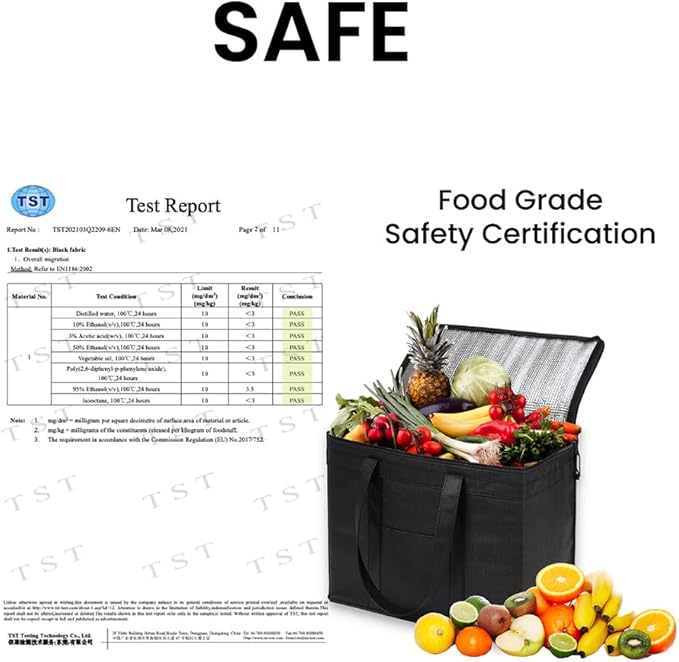 - FOOD GRADE SAFETY - We want the best for our customers, which is why our insulated bag is EU food grade certified, ensuring it's safe for your food and the environment.