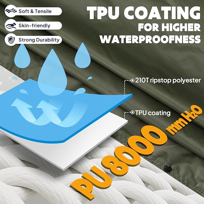 • Waterproof and Sturdy Material: The rain poncho is made of 210T ripstop polyester + TPU coating, this rain poncho is PU8000MM waterproof.To enhance the waterproofing capabilities of a rain poncho,we use techniques such as seam sealing or taping to ensure that water cannot seep through the seams.It comes with a drawstring hood, hook and loop fasteners along the sides ensures the optimal fit,which is good for protecting your head and face.