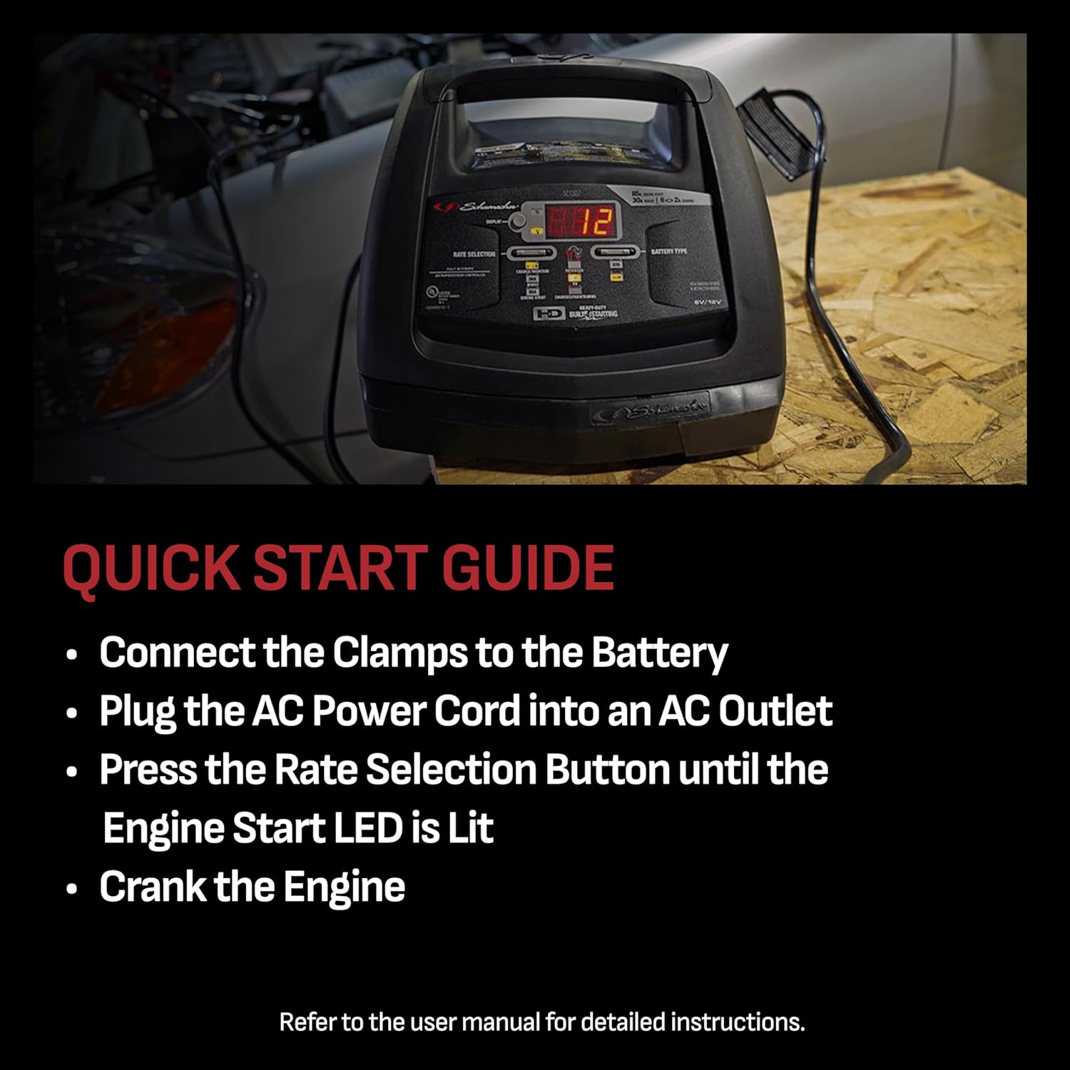 - Complete Package - Includes (1) SC1307 Fully Automatic Battery Charger and Engine Starter, (1) user manual