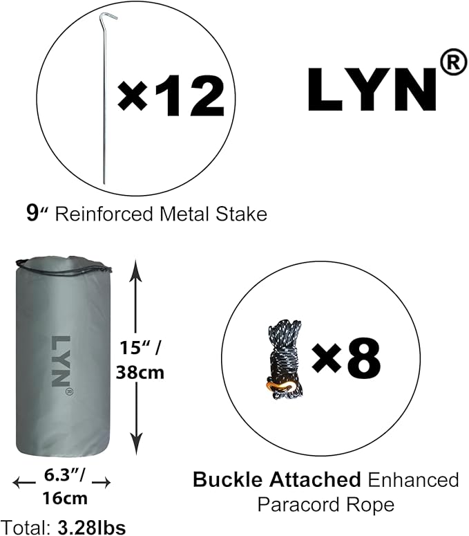 - đźă6.3"ÎŚ*15" 3.28lbsăPortable Enhanced Clothing Bag. 12 Enfoldment Buckles, Along With 8 Metal Buckle Attached Paracord Ropes and 12 Additional Reinforced Stakes.