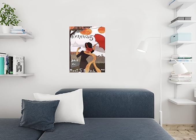 Albert Bergevin Avranches Baie du Mont St Michel 1910 Vintage Ad French Travel Advertisement Woman With Umbrella Cool Wall Art Print Poster 24x36