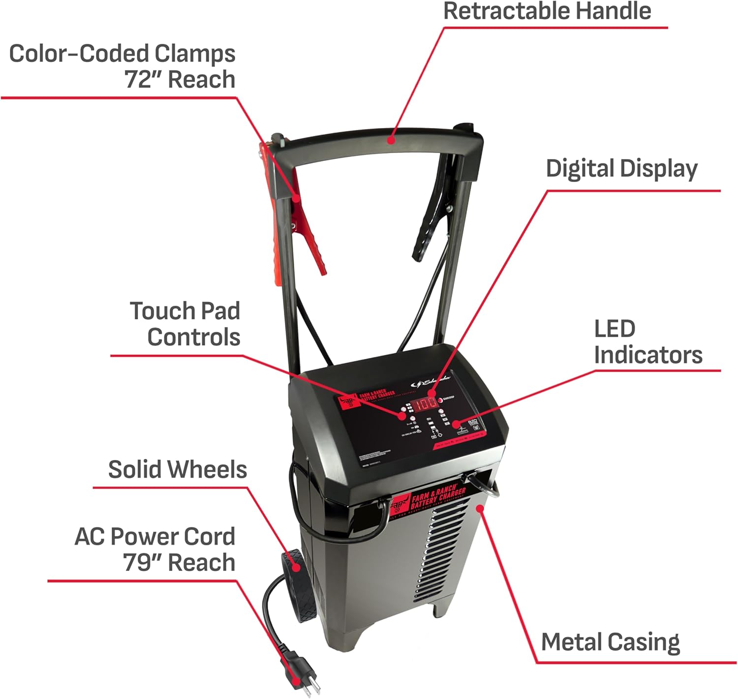- Complete Package - Includes (1) FR01336 Fully Automatic Wheeled Battery Charger and Engine Starter, (1) user manual