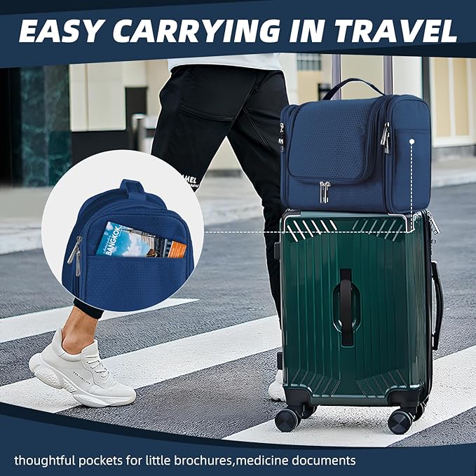 - Practical Hanging Hook: Our hanging toiletry bag features the HANGING function, the metal hook helps you hang the whole bag on the wall, especially in a narrow bathroom, camping tent, or RV. The hanging toiletry bag would save space and be convenient for accessing items while bathing