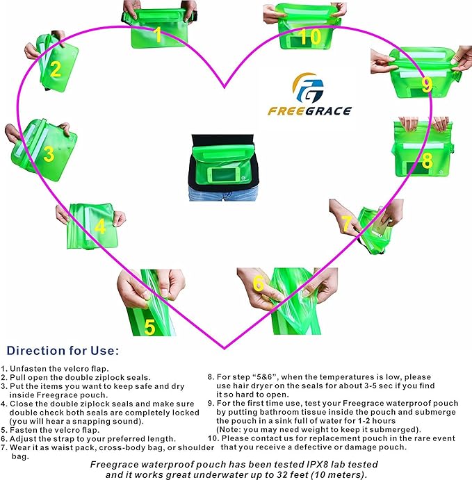 - MULTIFUNCTION and TOUCH-FRIENDLY - Freegrace transparent pouch is Touch Screen-Friendly, enabling you to text and talk while you soak up some sun and with Freegrace waterproof case you can take pictures and video underwater.