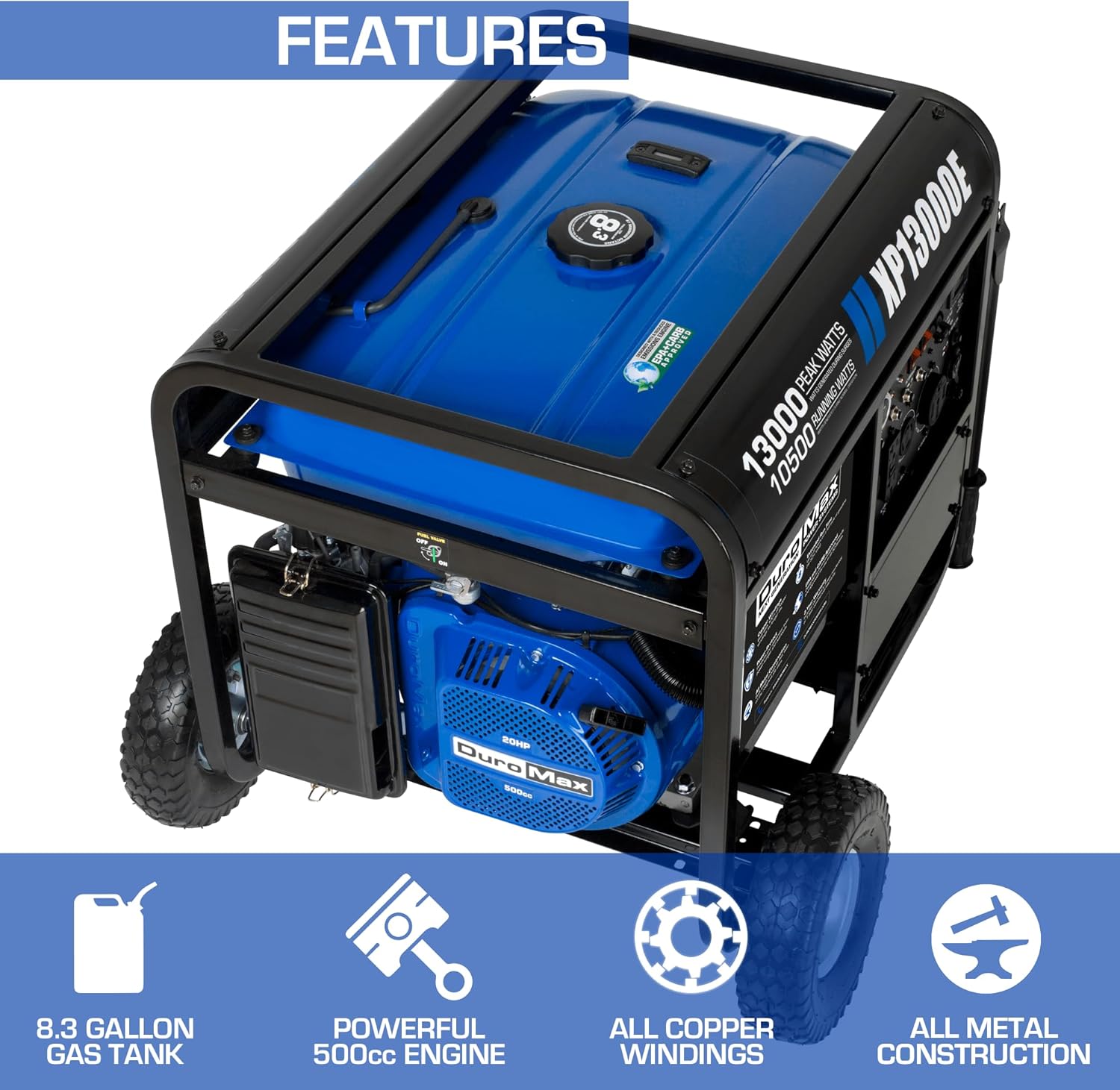 DuroMax XP13000E 13,000-Watt Gas Powered Portable Generator - Electric Start, Whole Home Backup Power, Transfer Switch Ready, RV & Emergency Ready