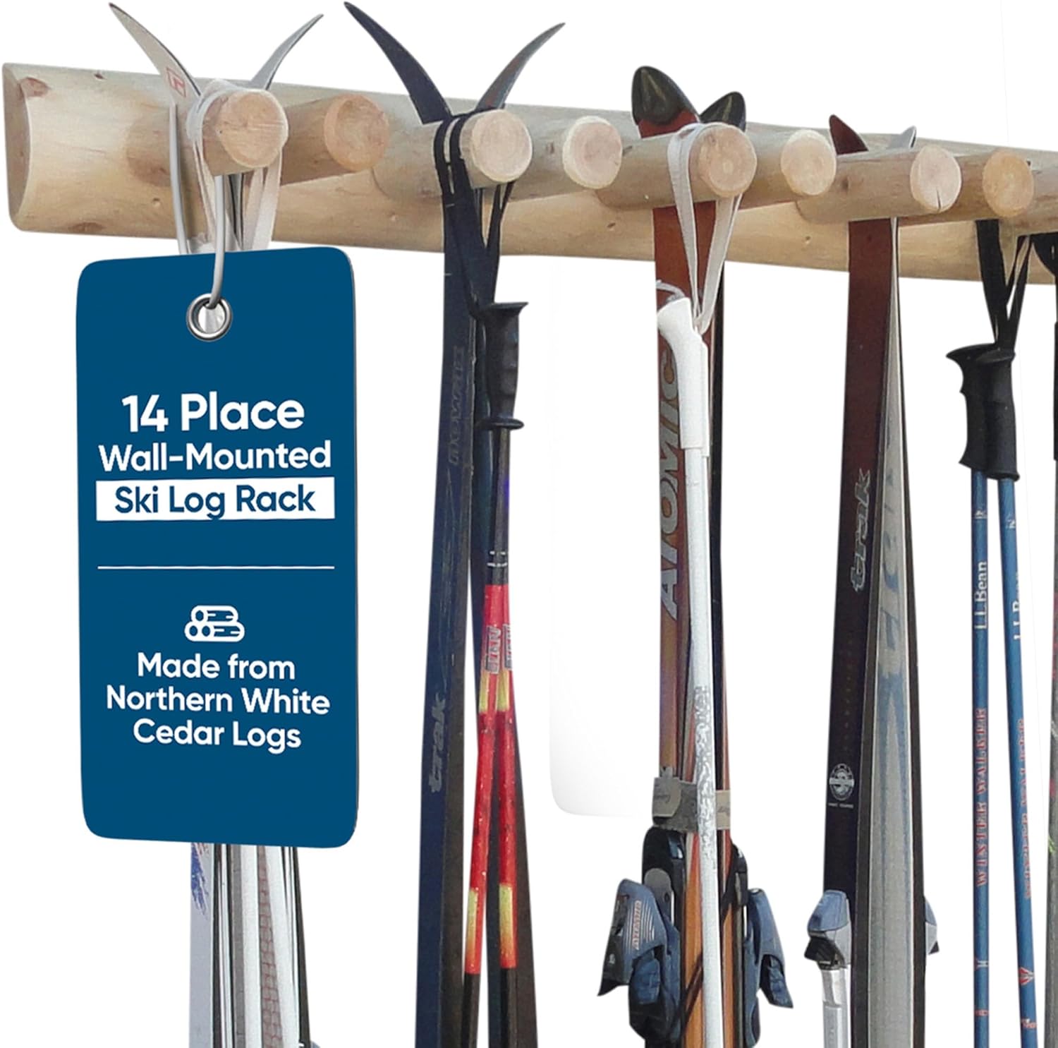 - CONSTRUCTED WITH DECAY-RESISTANT NORTHERN WHITE CEDAR LOGS - Built from the finest Northern White Cedar, this ski rack garage storage solution is designed to withstand harsh conditions, both indoors and out. The decay-resistant wood ensures that your garage ski rack wall mount remains strong and reliable for years to come. Whether in your garage, shed, or cabin, this durable ski holder wall mount offers a stable and attractive option for ski gear storage that stands up to the elements.
