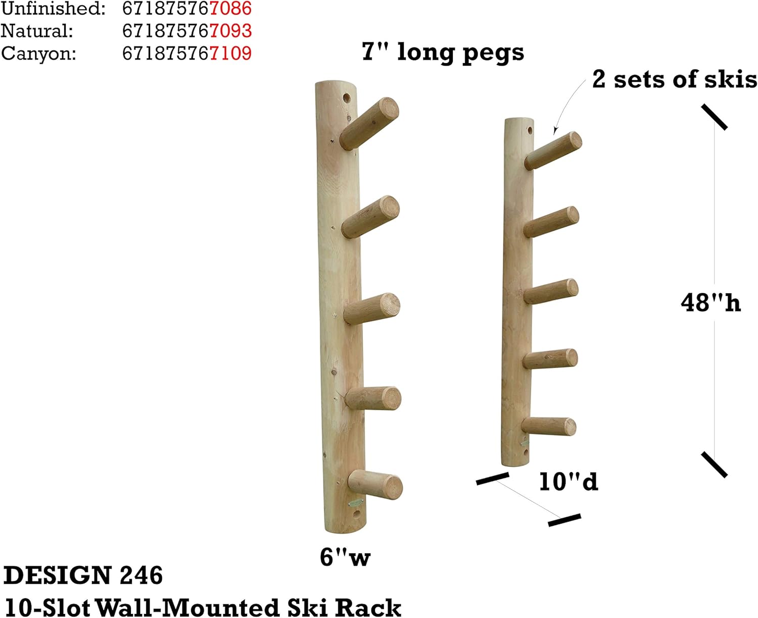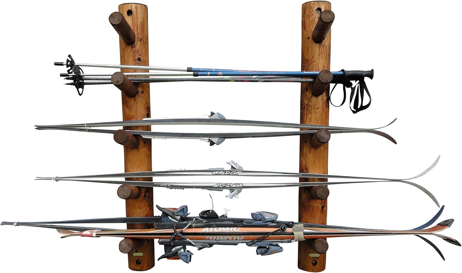 - 100% NORTHERN WHITE CEDAR CONSTRUCTION - Built from the finest Northern White Cedar, this ski rack garage storage solution is designed to withstand harsh conditions, both indoors and out. The decay-resistant wood ensures that your garage ski rack wall mount remains strong and reliable for years to come. Whether in your garage, shed, or cabin, this durable ski holder wall mount offers a stable and attractive option for ski gear storage that stands up to the elements.