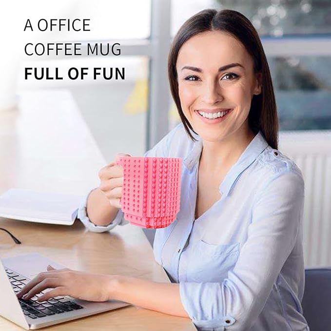 Build-on Brick Coffee Mug, Funny DIY Novelty Cup with Building Blocks Creative for Kids Men Women Xmas Birthday (Pink)