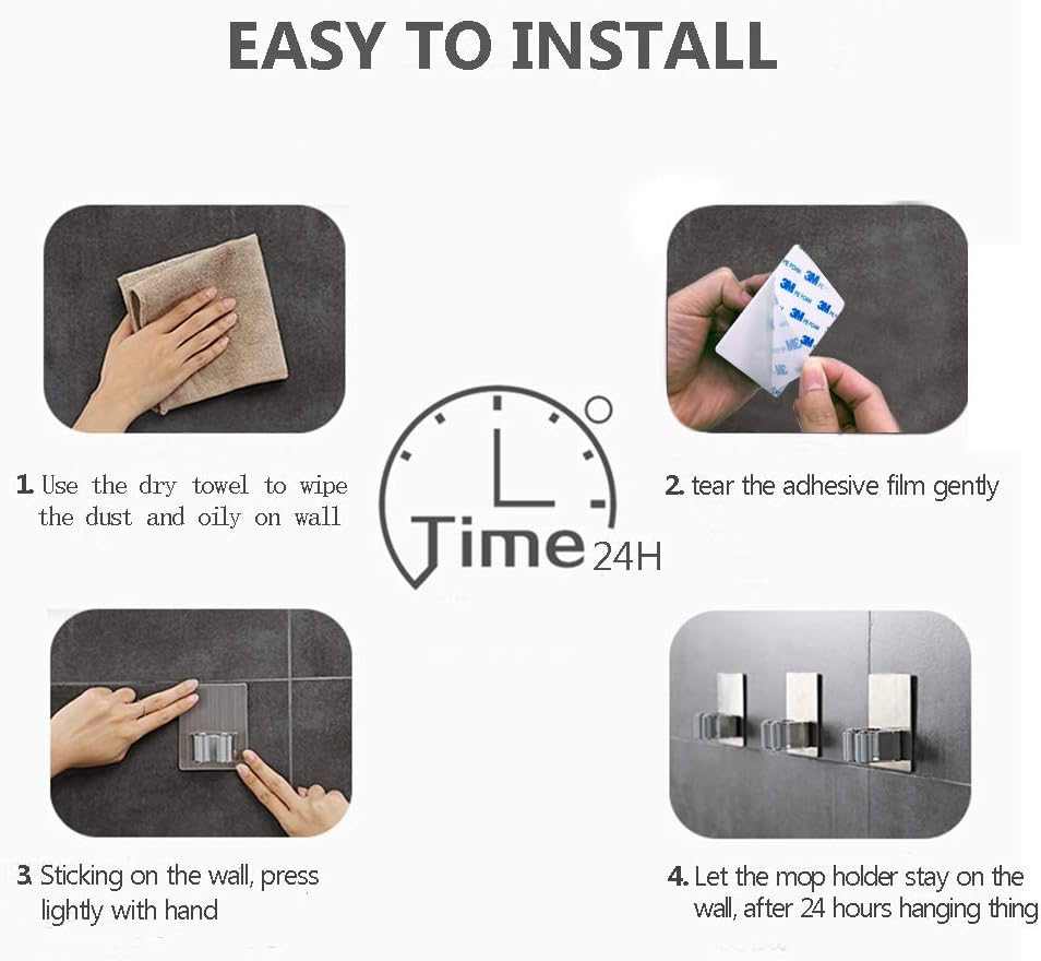 - Excellent Quality: 304 stainless steel with polished surface, waterproof and anti-rust. With a rubber roller buckle , anti-slip, the household broom can be stuck firmly and prevent it from falling off.