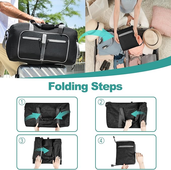 - Foldable and Spacious travel bag:The travel organizer bag can be folded into a really small size taking up so little space but opens up to have about 40L capacity of travel bags to use as a luggage bag in case that your suitcase swells. This travel duffel bag is designed to work best with bag packing cubes - to give you an organized lightweight travel experience.