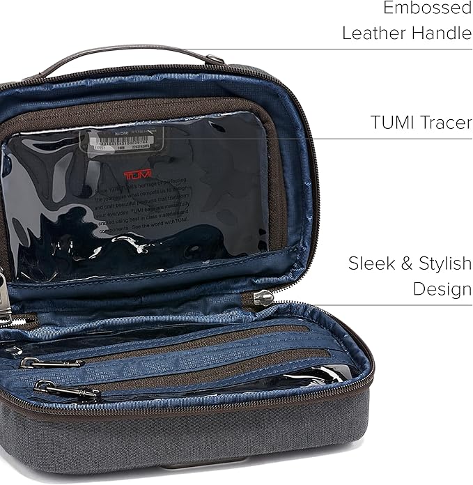 TUMI Alpha Split Travel Kit - Compact Toiletry Bag for Men & Women - Features Removable Leather Handle & 3 Zip Pockets