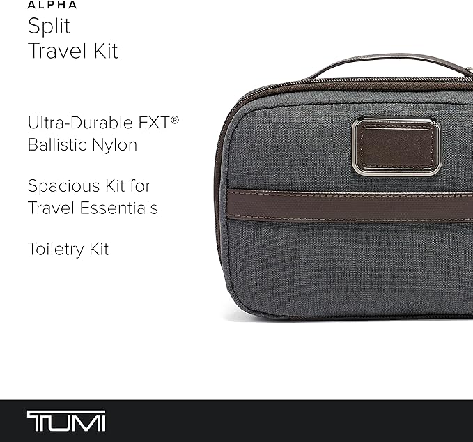 - Compact Design: The TUMI Alpha Split Travel Kit is a lightweight and durable nylon toiletry bag, perfect for organizing essentials during travel or gym visits