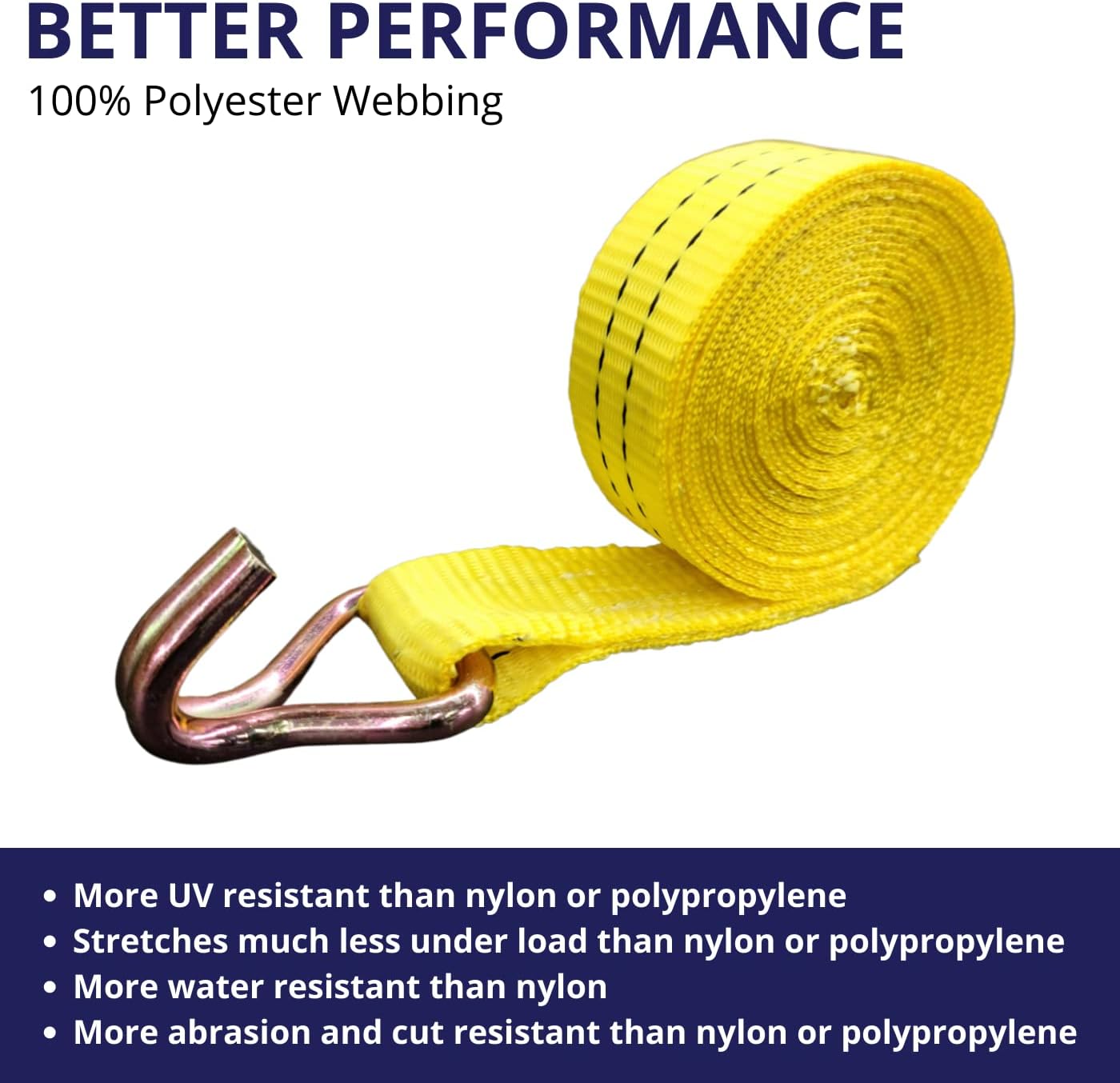 - HEAVY DUTY: 1.5-inch webbing width & 15-foot length with a 4400LB breaking strength & 1460LB working load limit