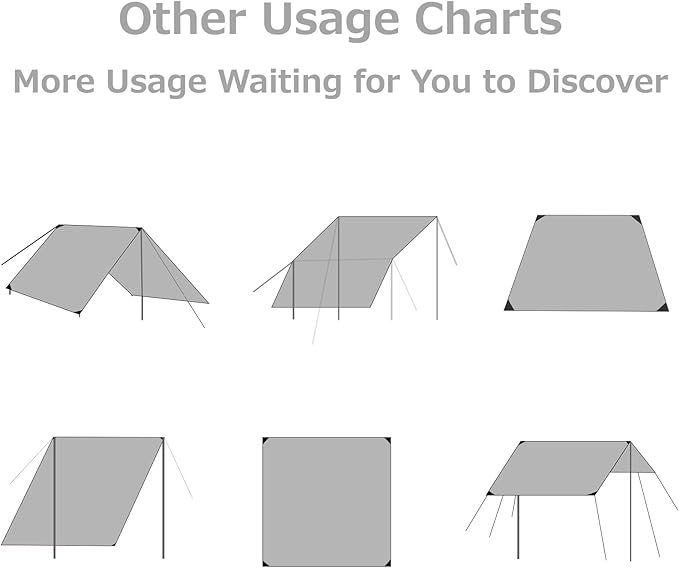 - π EASY TO USE: Unfold the camping tarp and use it as a tent footprint on the ground to protect the tent from dust, dirt and sharp objects; use a rope and tent pole can easily create a hammock rain fly for shade and awning; Put the tent tarp directly on the floor as a picnic mat, tent footprint, beach blanket etc