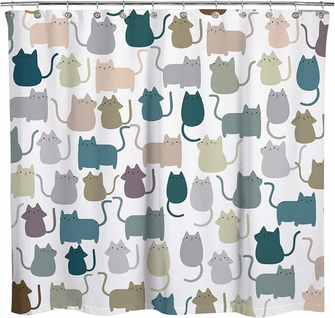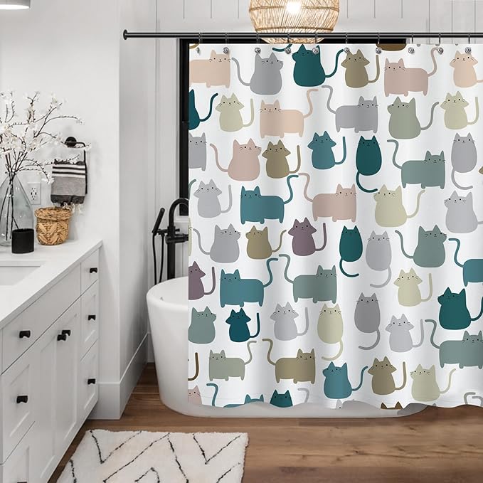 Sunlit Design Lovely Multicolor Cartoon Cats Fabric Shower Curtain, Cute Cats Bathroom Decoration Curtains for Baby Kids Children