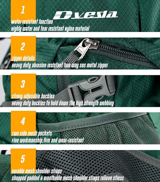 - 🚵★ Enjoying Your Hiking Backpack★ :Dveda 35L hiking backpack ideal for Disney day trip, day travel, overnight trip, camping, day hiking and vocation. Great hiking backpack for women and men. Its rip-resistant nylon construction sheds rain and resists wear better than cheaper polyester. Our Products have 24 moths Replacement Service and 100% Satisfaction, If you are not Satisfied with your Purchase for Any Reason, Please Feel Free To Contact Us.