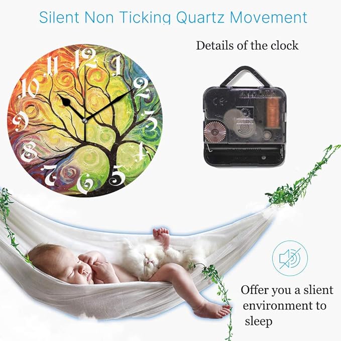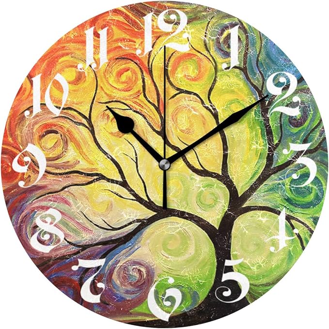 Wamika Wall Clock Tree of Life Rainbow Branch Leaves Seasonal Flowers Round Clock Silent Non Ticking Decorative, Spring Summer Autumn Floral Clocks 10 Inch Battery Operated Quartz Quiet Desk Clock