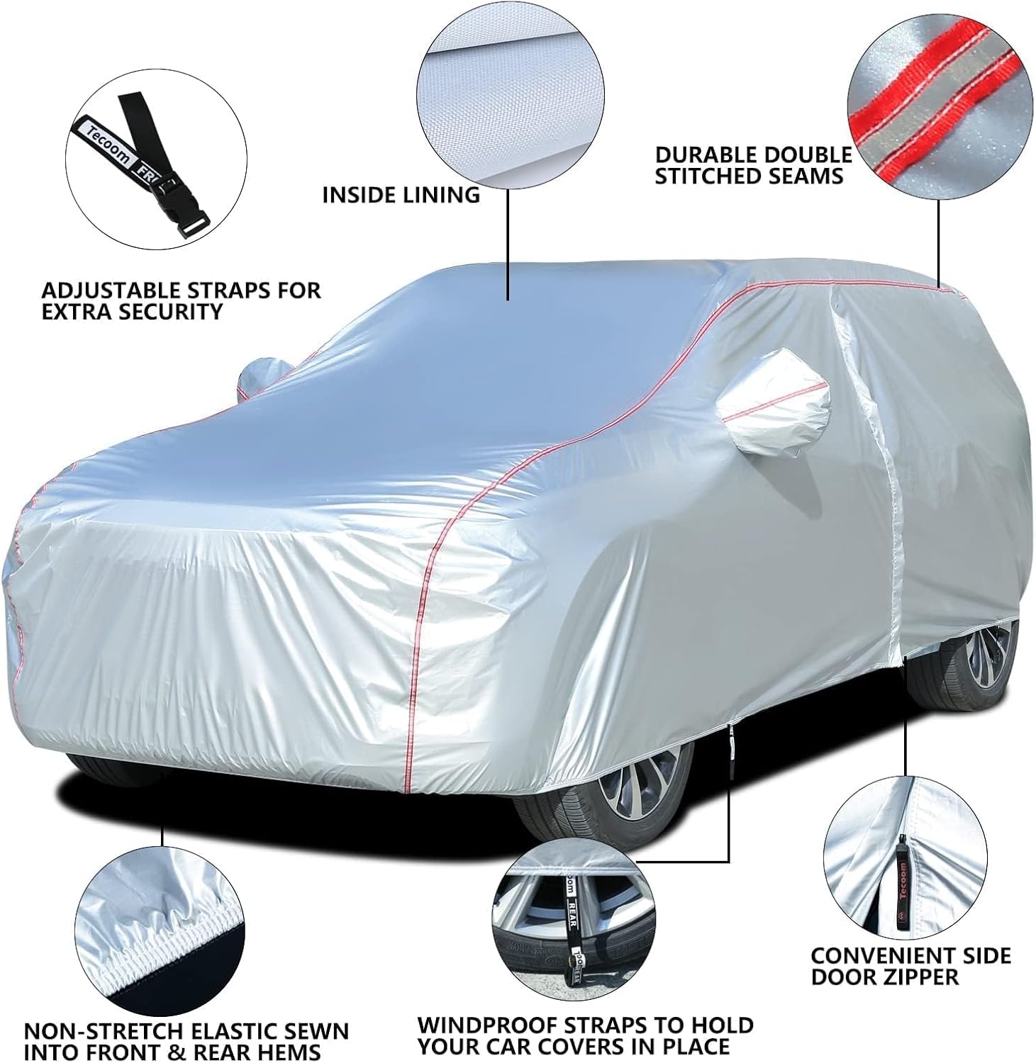 - 【All Weather Protection】Tecoom car covers is perfect for indoor and outdoor use, no matter the sun or the cold weather, protects your car safe from UV rays, snow, rain, frost, sand,dust, leaves, branches, birds dropping.