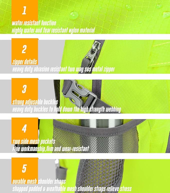 • 🚵★Ultra Lightweight ! 0.7LB!★ : Super lightweight and easy to fold up into a small pocket (A true space saver) to fit anywhere. So you can easily fold the backpack into its own pocket for storage, and unfold it when you reach your destination. To avoid overweight charge, simply unfold from your checked bags and use it as a carry on for your excess baggage. A must have for every trip!
