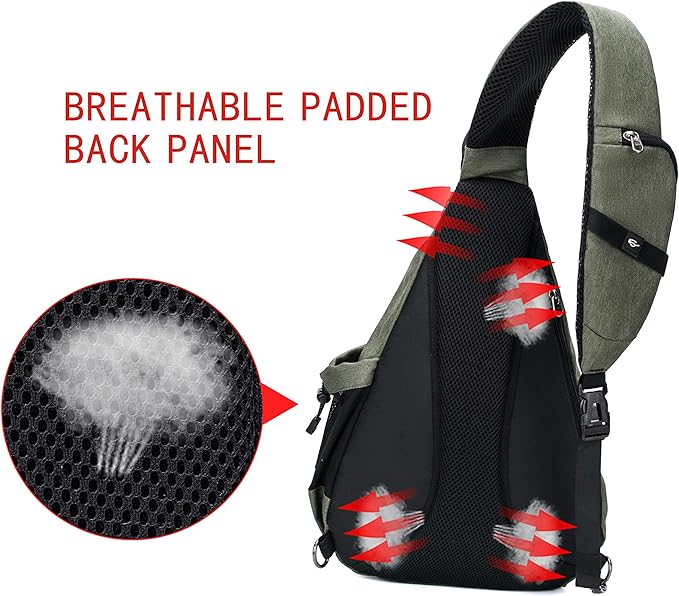 • DIFFERENT WAYS OF WEARING - Wear this sling bag over either shoulder with Reversible Shoulder Strap, or in the front to deter thieves. REFLECTIVE TAPE - Reflective detailing in the bottom of the big pocket for safety for late night using