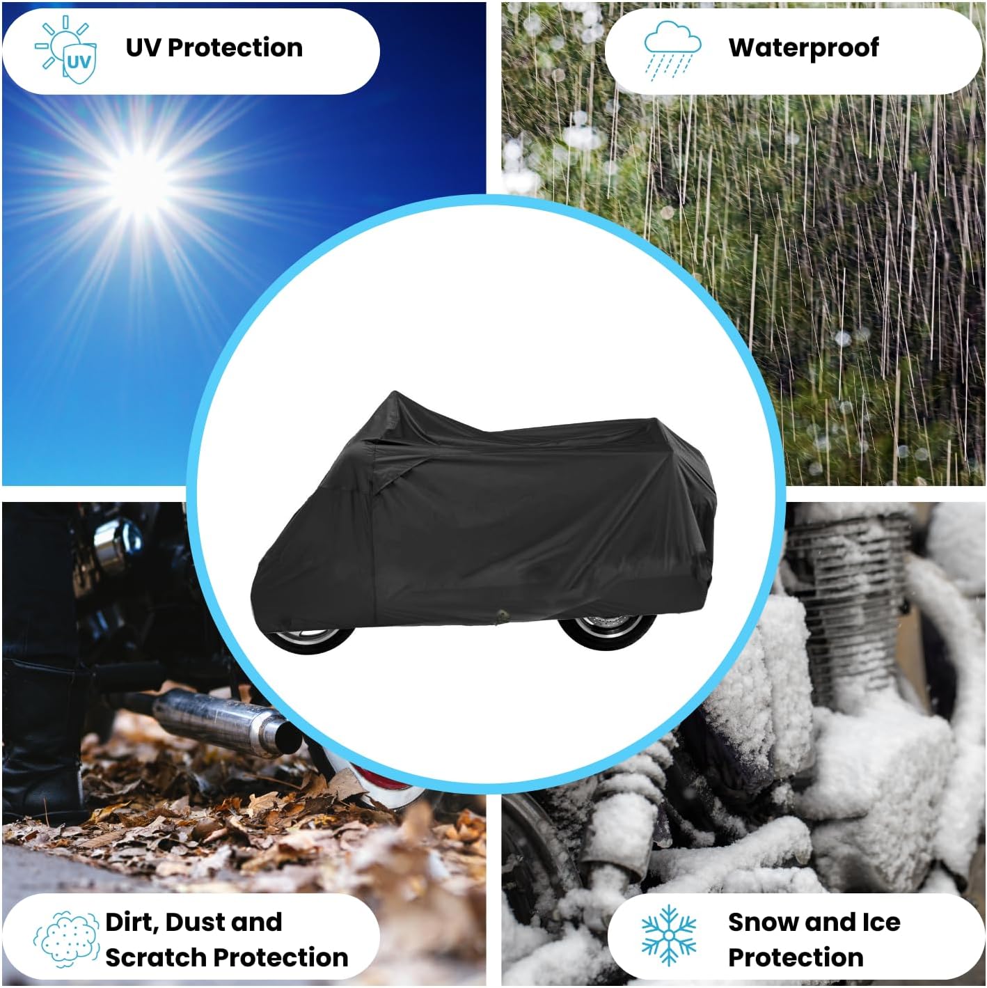 Deluxe Motorcycle Cover, Waterproof All Weather Outdoor Protection Universal Motorcycle Cover, Fade & Tear Proof Polyester fits Motorbike up to 97" L