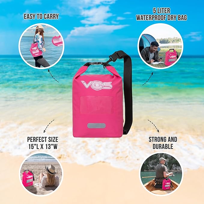 VOS Waterproof Premium Dry Bag - 5L | All-purpose Bag Lightweight Dry Storage Bag Backpack for Travel, Swimming, Boating, Kayaking, Camping, Beach (Pink)