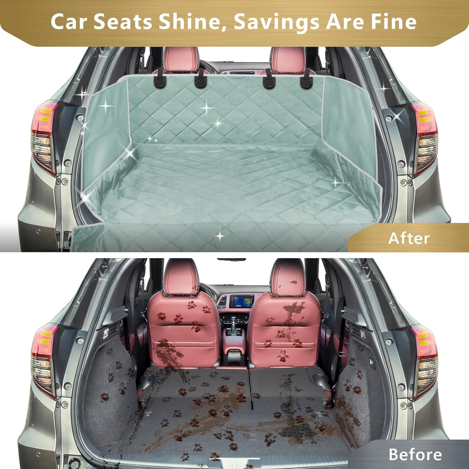 - Easy Clean-up - Made of 4-layers 600D oxford fabric; Our trunk cover for dog is Waterproof, stain-resistant and simple to clean; Wipe off dirt with a damp cloth or vacuum it