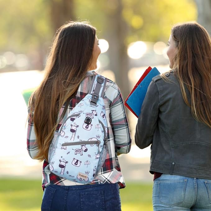 ZOMAKE Sling Bag for Women Men, Small Crossbody Sling Backpack, Mini Water Resistant Shoulder Daypack for Travel, Anti Thief Chest Bag for Hiking, Sports(Zoo Blue)