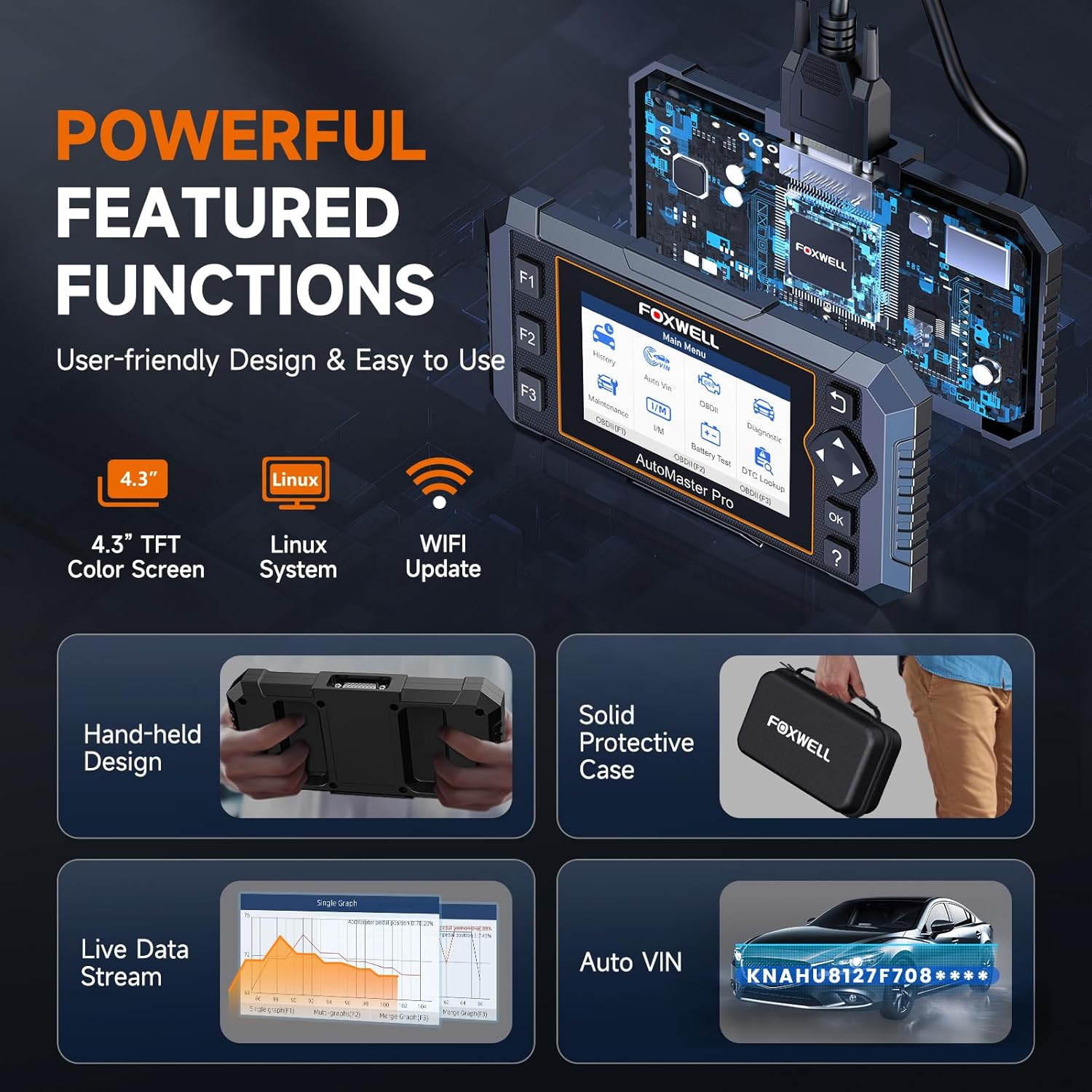 - 【New Experience & Plug and Play】1. New update method--- One-click Free WiFi Update. No need to register an account before use and NO built-in battery. The scanner is powered by connecting with car ; 2. 2025 version Linux system operates faster than previous software; 3. With Built-in storage, you can say goodbye to micro SD card; 4. More intuitive viewing menu. One-click find I/M, Battery Test, DTC Lookup. All these changes of foxwell nt614e scan tool are aim to bring a faster and smoother user experience