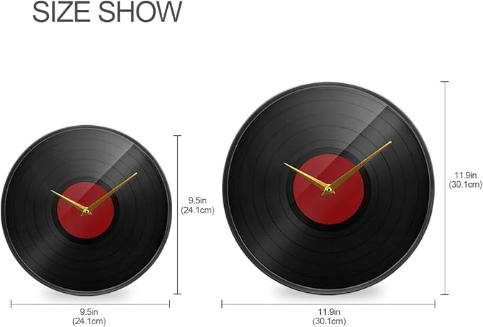 ALAZA Funny Classic Music Record Disco Wall Clock Battery Operated Silent Non Ticking Clocks for Living Room Decor 12 Inch / 9.5 Inch