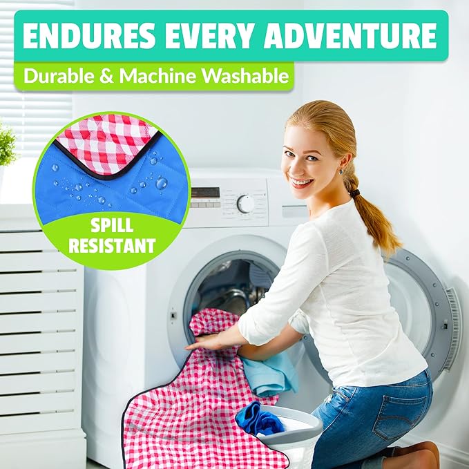 - DURABLE & MACHINE WASHABLE - Resistant inner lining quickly wipes clean of dirt or stains and is washing machine friendly. Durable water resistant backing and padding for use on grass, sand and many outdoor surfaces.