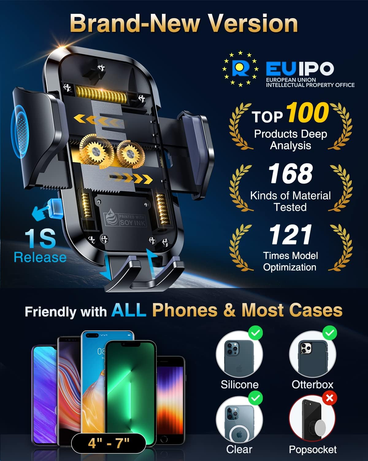 - 【Holder King: Sturdily Guard You Safe Driving】Focusing on customers' needs, we created the Pro Version car mount that is suitable for both cell phones & cases; and deepened the clamping arm to 0.6 inches to ensure a more stable support. The Pro Version car mount is suitable for all 4-7 inches cell phones & 99% of phone cases, compatible with iPhone16 Pro Max 15 14 13 12 X 8 7 Mini, Samsung Galaxy S22 S21 S20 Ultra Note 20 A71 A51 A50 A10, LG, Google Pixel, Xiaomi, Motorola, OnePlus