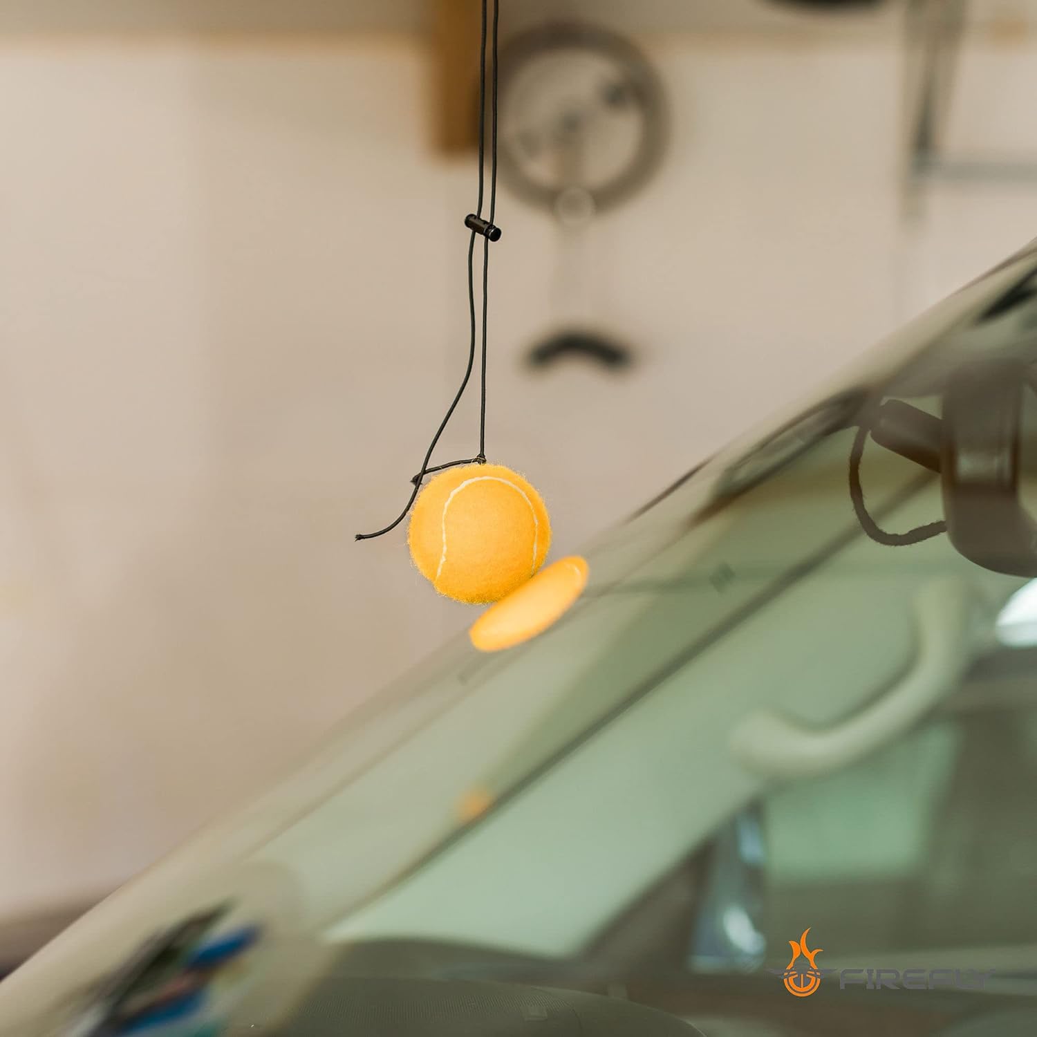 - All-in-one Parking Garage Stop Assist Kit: This Tennis Ball Car Stopper on a String kit comes with everything needed to easily install, adjust and use right away--13 foot string, clip, and hook are included in this garage ball for parking kit.