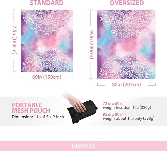 Beach Blanket Waterproof Sandproof Oversized 95”x 80”,Sand Free Beach Mat with Corner Pockets,Portable Mesh Bag for Beach Festival,Picnic,Travel and Outdoor Camping (PinkMandala)