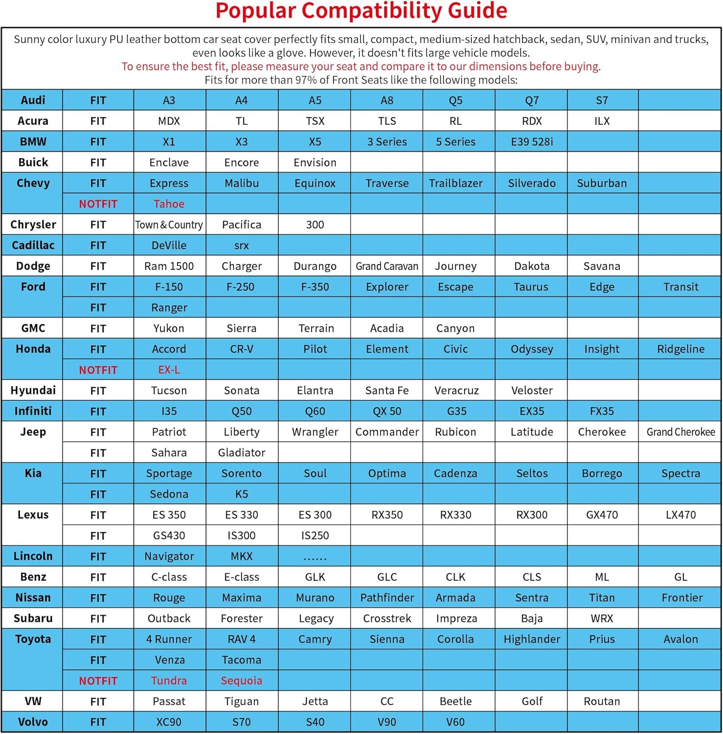 - ✅Premium PU Leather Material-The auto seat cover is made of high-grade soft PU leather, waterproof, easy to scrub, wear-resistant and good breathability. Built-in a layer of highly flexible sponge, four seasons applicable. Maintain the comfort of the buttocks, helps relieve pressure on hips and thighs from driving for a long time. At the bottom of cushion is rubber sole which prevent falling off from your car driver seat.