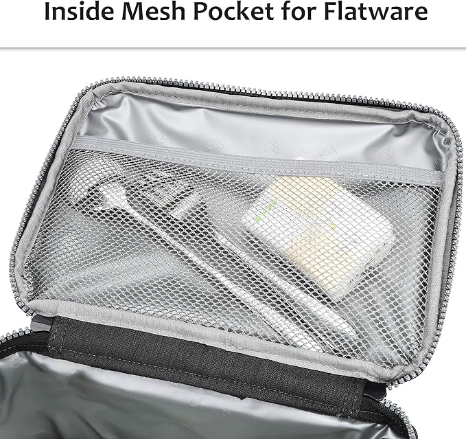 - LARGE CAPACITY: Measuring 9.8 x 7 x 7.8 inches, this adult lunch box offers plenty of room for meals and snacks. It also features a front zipper pocket for essentials like keys and napkins, side mesh pockets for water bottles, and an interior mesh pocket for cutlery like forks, spoons, and knives, making it the perfect lunch box for men or women who pack meals for the day.