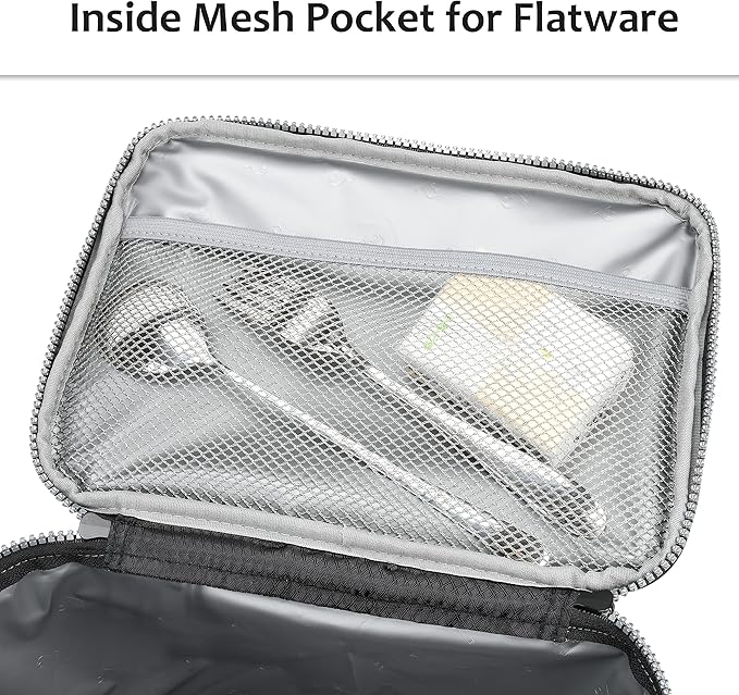 - LARGE CAPACITY: Measuring 9.8 x 7 x 7.8 inches, this adult lunch box offers plenty of room for meals and snacks. It also features a front zipper pocket for essentials like keys and napkins, side mesh pockets for water bottles, and an interior mesh pocket for cutlery like forks, spoons, and knives, making it the perfect lunch box for men or women who pack meals for the day.