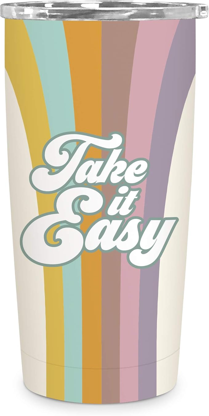Studio Oh! Insulated Stainless-Steel Tumbler - Double-Walled 17-Ounce Travel Cup - Vacuum Seal Keeps Liquids Hot or Cold for Hours - Fits Standard Size Cup Holders - Take It Easy