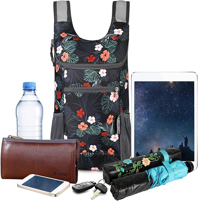 - Convenient and Lightweight: This hiking daypack is easy to fold and fit into an ultra-compact pouch. It's convenient to pack in your suitcase, purse, or car as a travel backpack without taking up too much space. Unfold size: 8.27x6.30x13 inches, Ultralight weight: 4.59oz