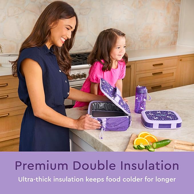 Bentgo Kids Lunch Bag - Durable, Double-Insulated Lunch Bag for Kids 3+; Holds Lunch Box, Water Bottle, & Snacks; Easy-Clean Water-Resistant Fabric & Multiple Zippered Pockets (Unicorn)