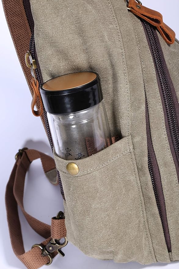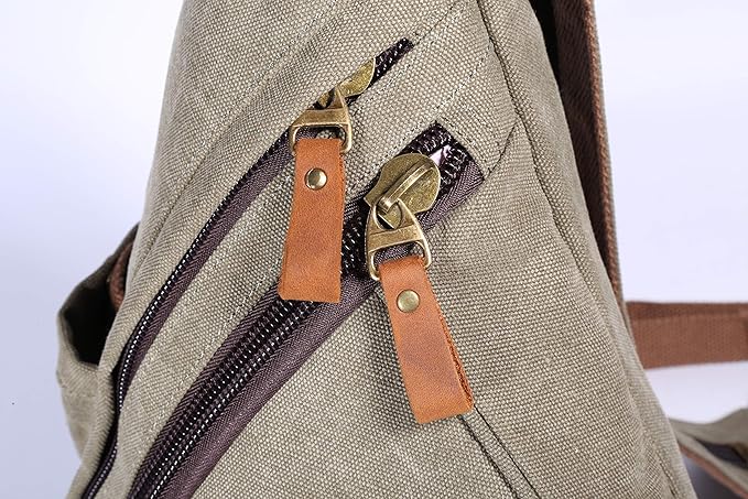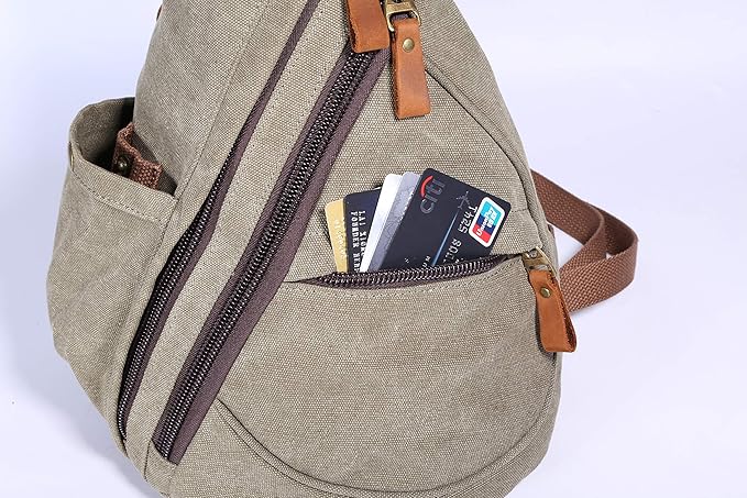- Dimension: lightweight, water-resistant canvas material with top-quality zippers and brass fittings, the small crossbody backpack dimension: 10 X 7 X 16 inches / weights 1.5lb, very portable