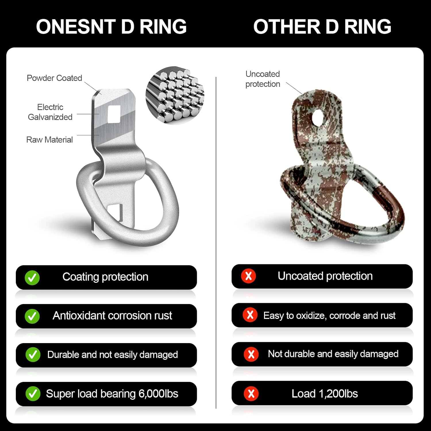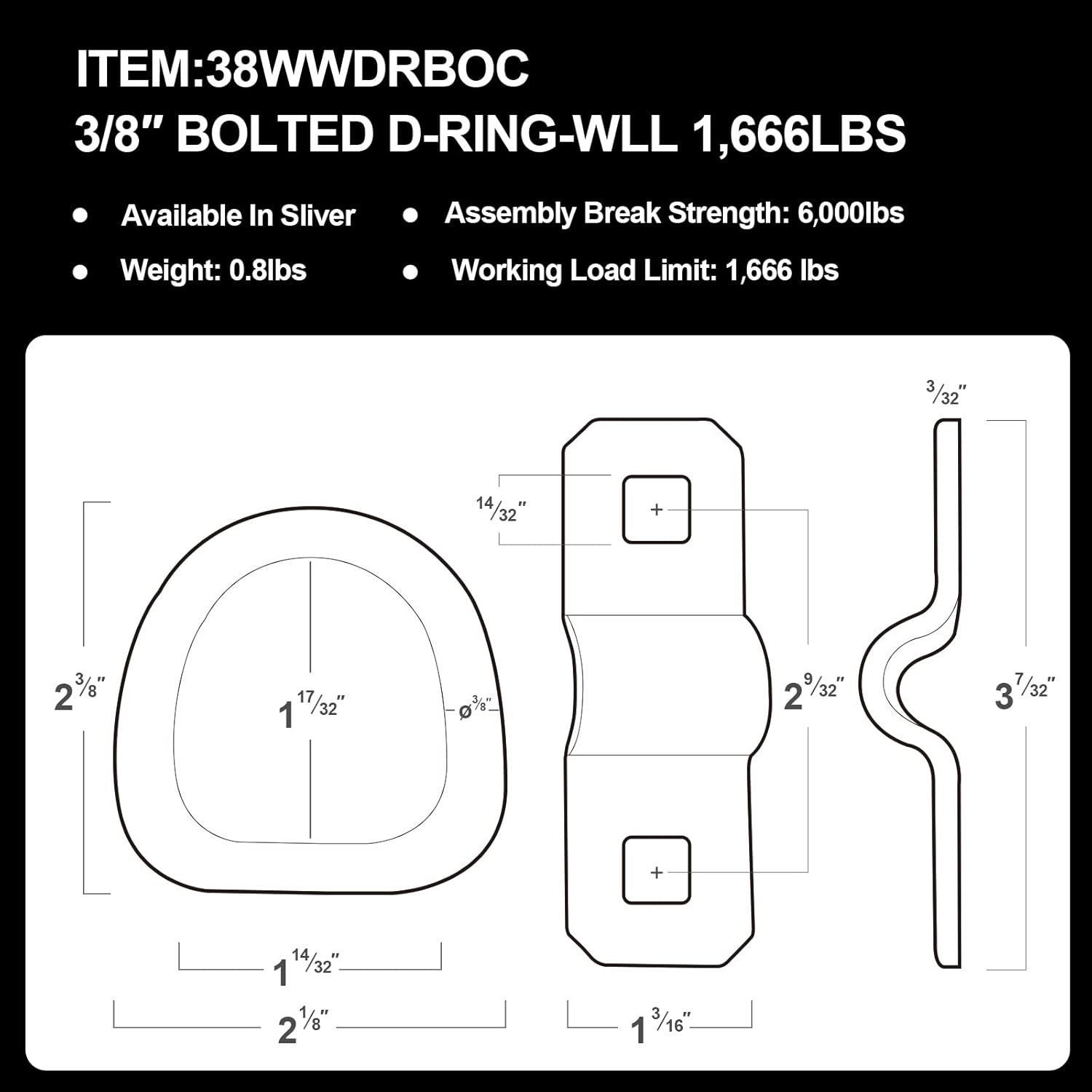 - Pack of 6 These medium-mini D-rings are made of exceptionally heavy duty solid steel, 3/8" diameter thick. They are strong and durable, and can handle a load up to 1,666 pounds. That means that this pack of 6 rings can bear up to 10000 pounds! See the description below for a clear guide on how to figure out your tie-down limits when loadings trucks and trailers, especially if you're up for DOT inspection Bolt on D rings